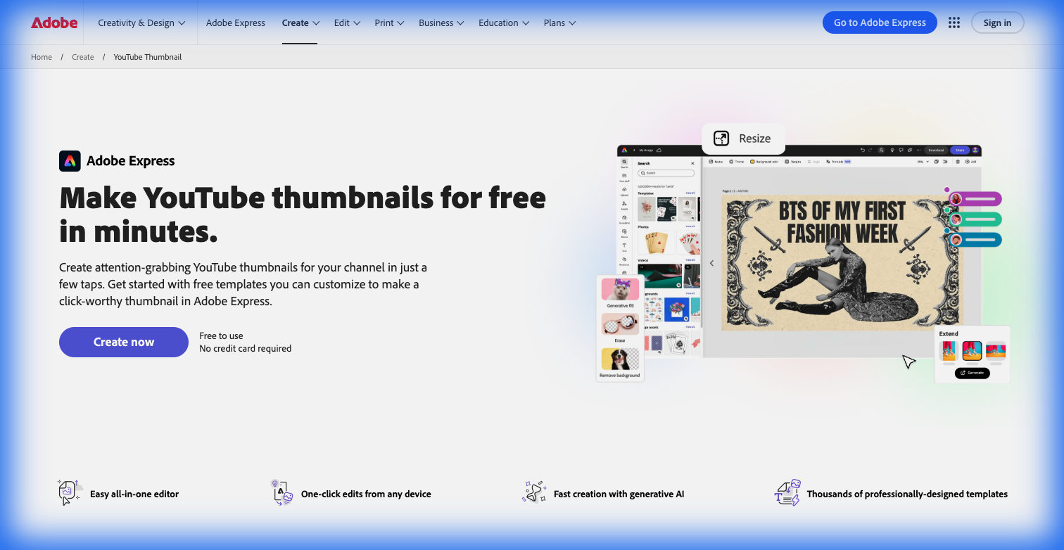 Adobe Express YouTube thumbnail maker