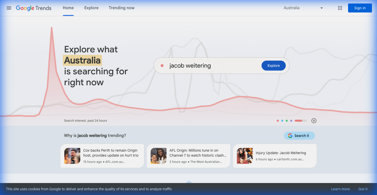 Why it wins in 2026: It’s the best way to break out of your bubble. If you make tech videos, Google Trends will show you that interest in "AI Glasses" is spiking 3 weeks before the main YouTube channels cover it. If you can be the first high-quality video on a rising trend, you win.