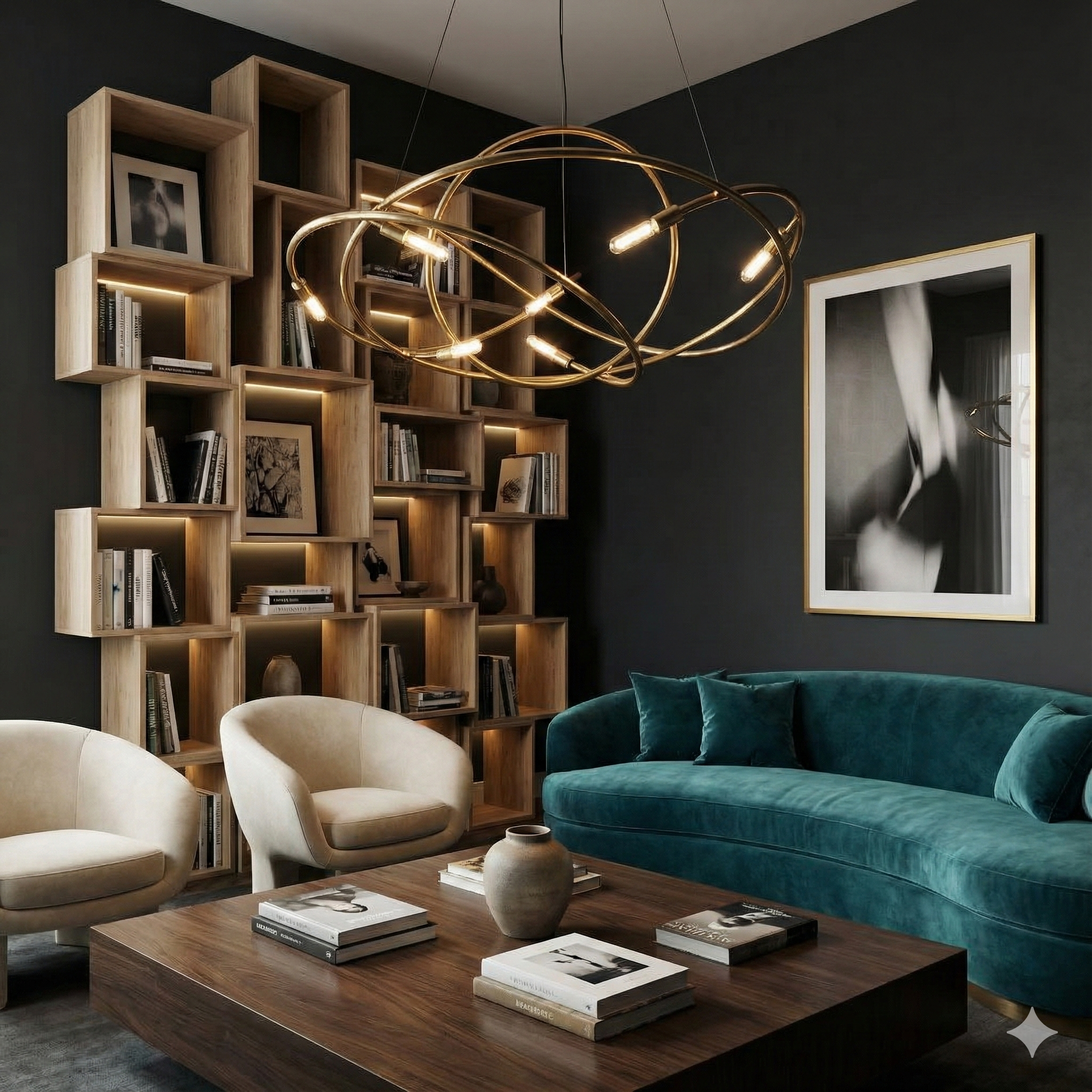 Practicality doesn't have to be boring. Functional drama introduces bold, sculptural pieces that serve a purpose. Whether it's a dramatic light fixture that zones a room or a striking shelving unit, these elements are beautiful workhorses that add immediate impact. It relies on the idea that utility items can also be art, turning everyday necessities like storage or lighting into the focal point of a room.